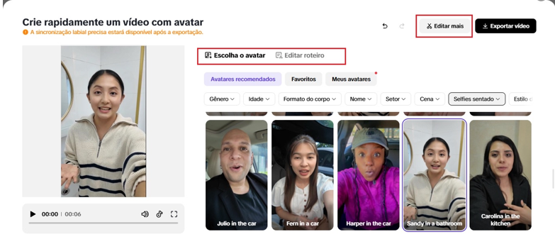 Controle aparência, expressões, roupas e acessórios. Usando recursos naturais de IA, é possível animar o avatar, incluir narração automática e gerar interações orgânicas.