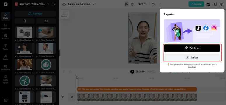 Finalize o design e exporte em alta definição. Compartilhe diretamente em redes sociais ou utilize o influenciador de IA em campanhas de marketing digital para maximizar a visibilidade da marca.