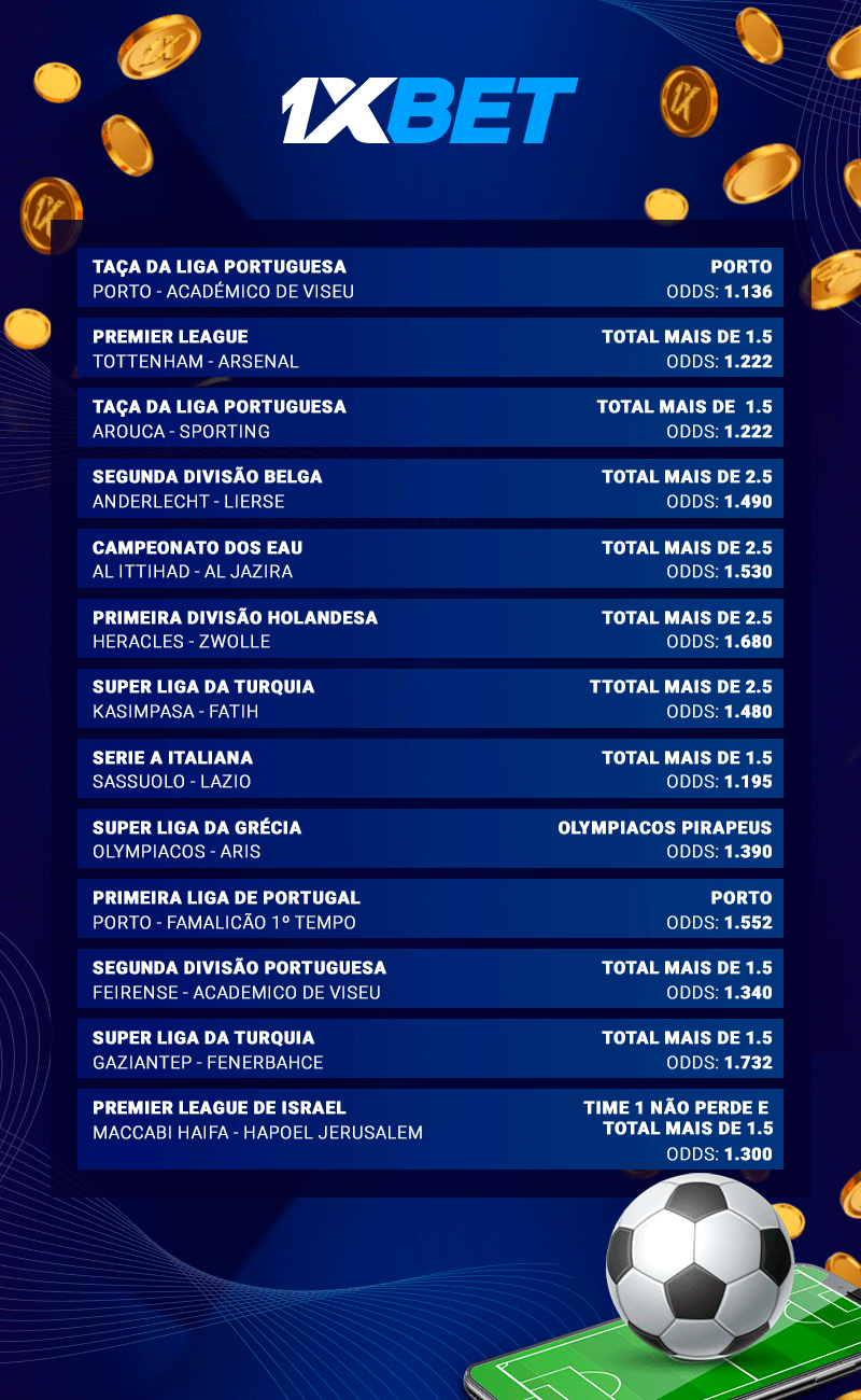 Como você pode ver, a lista de 25 eventos incluiu partidas de diferentes torneios. Portugal, Bélgica, Israel, Holanda, Inglaterra, Grécia, Itália, Emirados Árabes Unidos, Turquia, México e Costa Rica - uma variedade incrível. E, ao mesmo tempo, não se pode dizer que o risco foi excessivo: a cotação mais alta da lista é de 1.99. De fato, 15 eventos da lista tiveram odds abaixo de 1.5, o que é considerado um sinal de alta probabilidade.