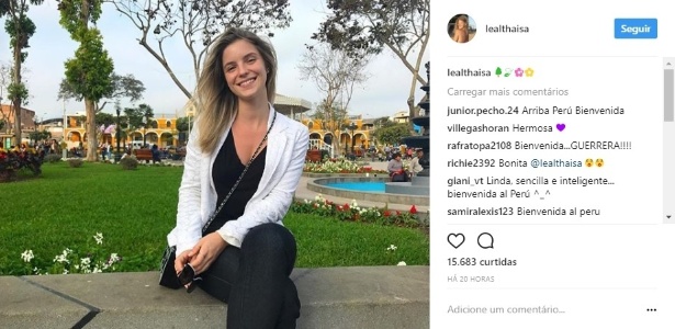 Em semana decisiva para o futuro da seleção peruana, o centroavante do Flamengo Paolo Guerrero recebe o apoio da namorada, Thaísa Leal. A nutricionista brasileira viajou com o jogador para Lima, no Peru, e postou algumas fotos da viagem em sua conta pessoal no Instagram.