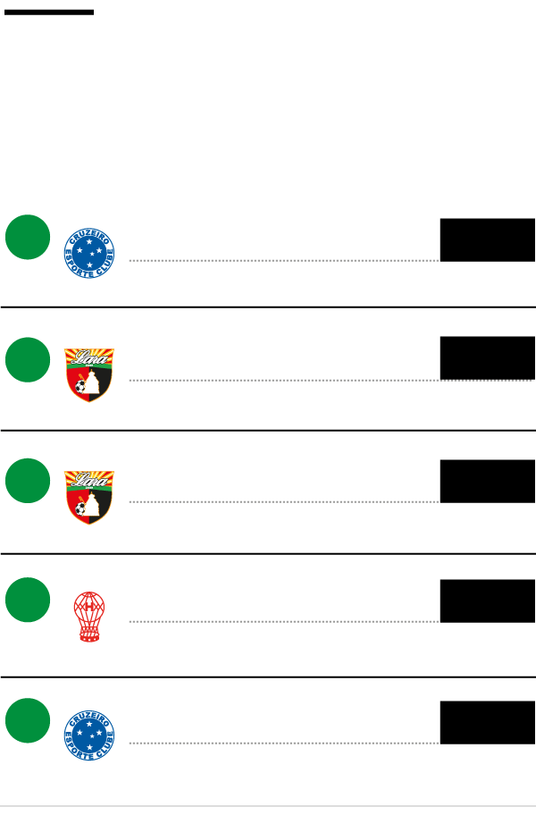 Os outros dois confrontos foram mais recentes. Em 2012, também pelas oitavas de final, perdeu por 3 a 0 diante do Corinthians, no Pacaembu, após empate sem gols no Equador. Cenário parecido com o de 2013, na mesma do torneio, onde acabou derrotado pelo Fluminense por 2 a 0, em São Januário.