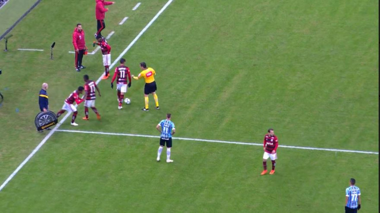 Renato Gaúcho percebeu o problema e tratou de colocar Leonardo no lugar do veterano Léo Moura para tentar parar o atacante rubro-negro. Vitinho quis saber? Não. Em sua melhor jogada, saiu enfileirando gremista atrás de gremista e Cícero precisou dar um chutão para aliviar.