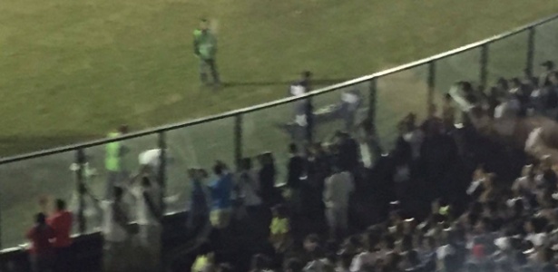 O fã vascaíno não se conformou com o gol anulado pela arbitragem - no segundo tempo - contra o Flamengo, pulou o vidro que separa a arquibancada do gramado e foi derrubado com uma banda por um policial do Grupamemto Especial de Policiamento em Estádios (Gepe). Atingido, ele ficou caído em um pequeno vão na beira do campo durante cerca de 10 minutos, até ser retirado pela equipe médica do estádio.