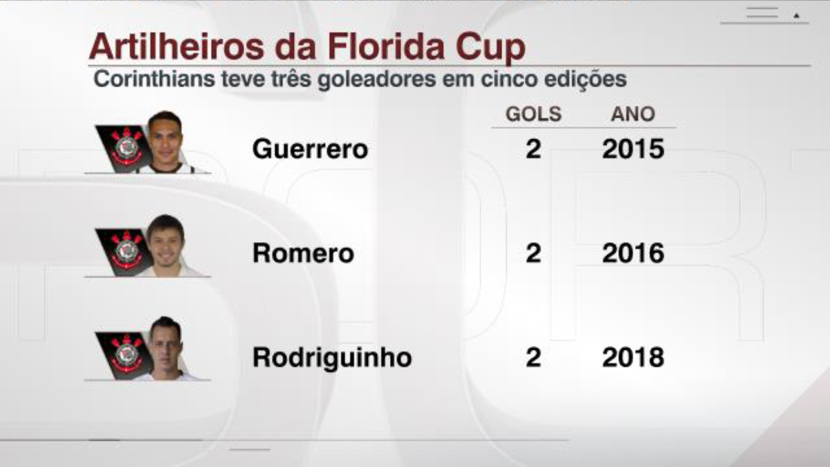 Apesar de nunca ter ficado com o título, o Corinthians é o recordista de participações na Florida Cup – cinco ao todo, já considerando a edição deste ano. O Timão só ficou de fora em 2019. Logo atrás vêm Fluminense e Atlético-MG, com três aparições cada. Entre os clubes de fora, Barcelona , do Equador, e o Atlético Nacional lideram com duas participações – o time colombiano é o primeiro adversário do Palmeiras , que estreia no torneio este ano.